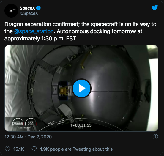 「Dragon 2」搭载首个Covid-19太空药物研究实验,助力全球抵抗疫情;对接程序大升级,无需人工,全自动完成对接