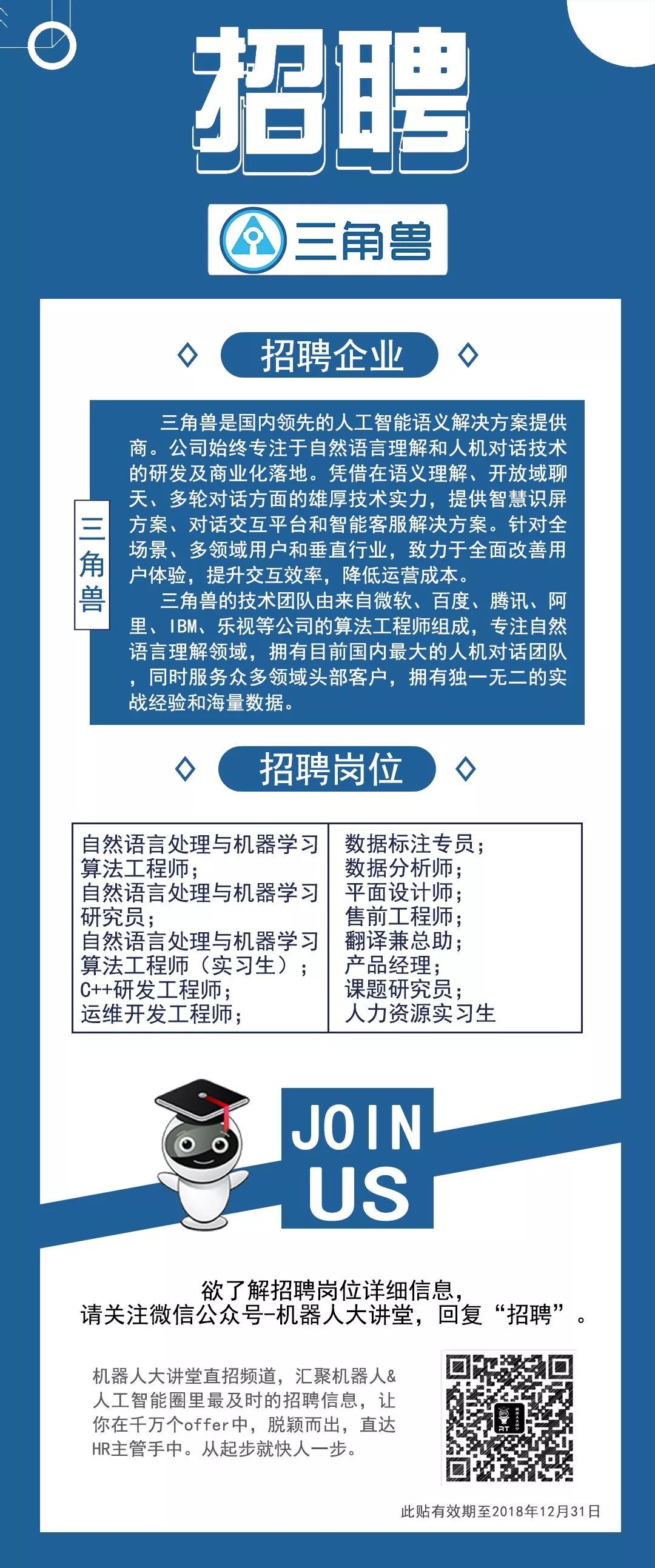 三角兽的技术团队由来自微软、百度、腾讯、阿里、IBM、乐视等公司的算法工程师组成,专注自然语言理解领域,拥有目前国内最大的人机对话团队,同时服务众多领域头部客户,拥有独一无二的实战经验和海量数据。
