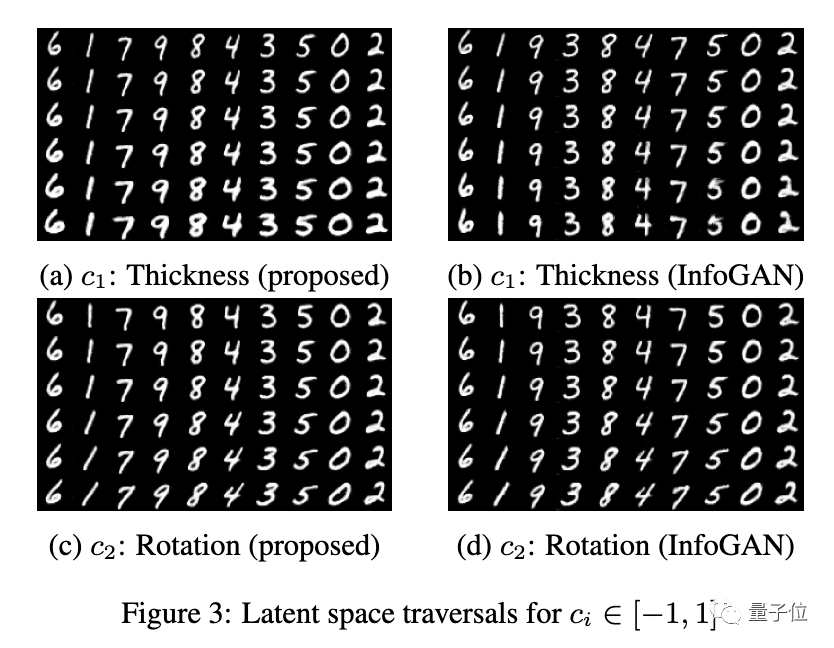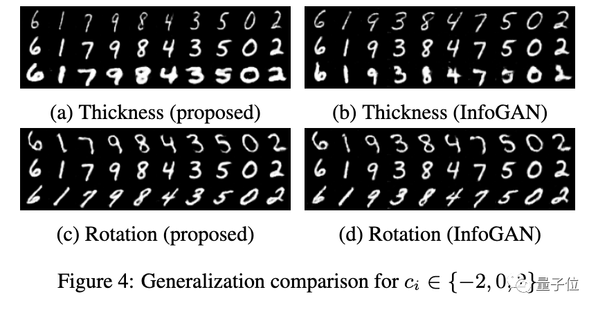 结果表明,新方法比InfoGAN的泛化能力更强,在输出图像变粗的同时,携带了更丰富的数字特征。
