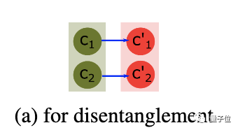 正如图中提取出的三个特征,其中两个引出第三个。而连接红绿两点的线代表了观测变量与潜码之间的因果关系,让观察变量控制生成器输出的显著特征。