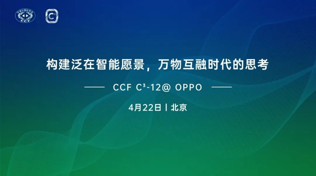 CCF C³第十二期主题是:构建泛在智能愿景,万物互融时代的思考,将于4月22日周五晚(18:30-21:30)在OPPO北京举行。