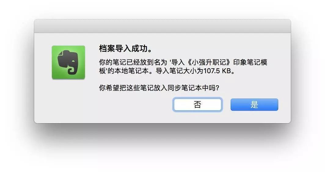 这种方式的模板导入的方法就更简单啦,只需要双击 enex 文件就会自动导入到你的笔记本中。