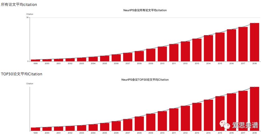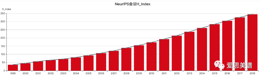 最后,Acemap对NeuIPS近年H-Index、Top30论文的平均引用量、所有论文的平均引用量进行了统计。会议H-index变化如下: