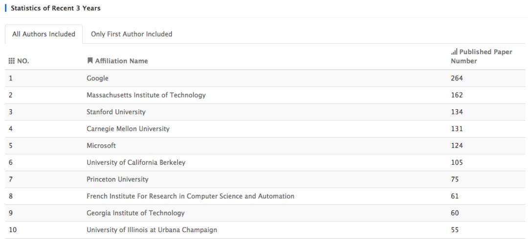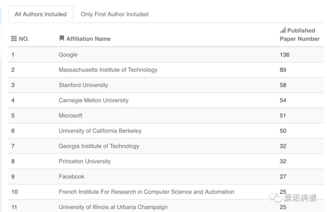 同时,我们也看到前10名中几乎都是美国机构,可见美国在该领域的绝对领先地位。