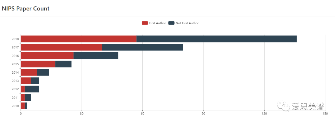其中,纵轴代表年份,横轴代表该机构发表的论文数。红色为第一作者身份发表的论文数。黑色位非第一作者身份发表的论文数。