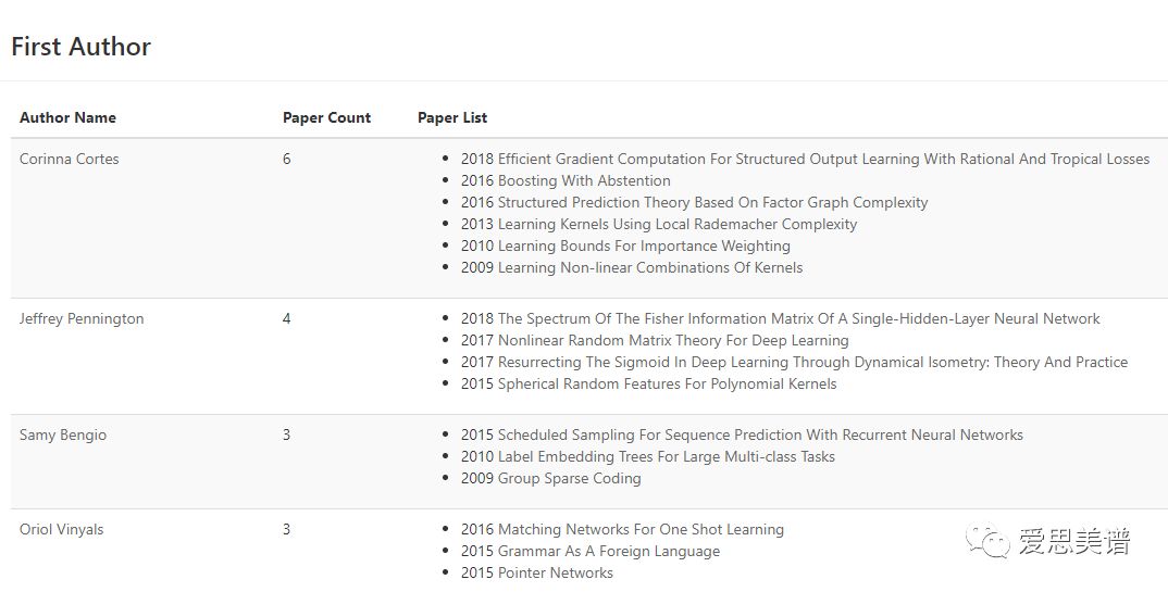 上图可以看到,谷歌公司以第一作者身份发表论文数最多的几个作者是: