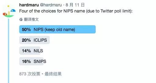 不过大家的回应好坏参半。有人支持,有人反对,谷歌大脑研究员 David Ha(Twitter@hardmaru)个人统计结果,结果 50% 投票者认为保留原来的名字更好。