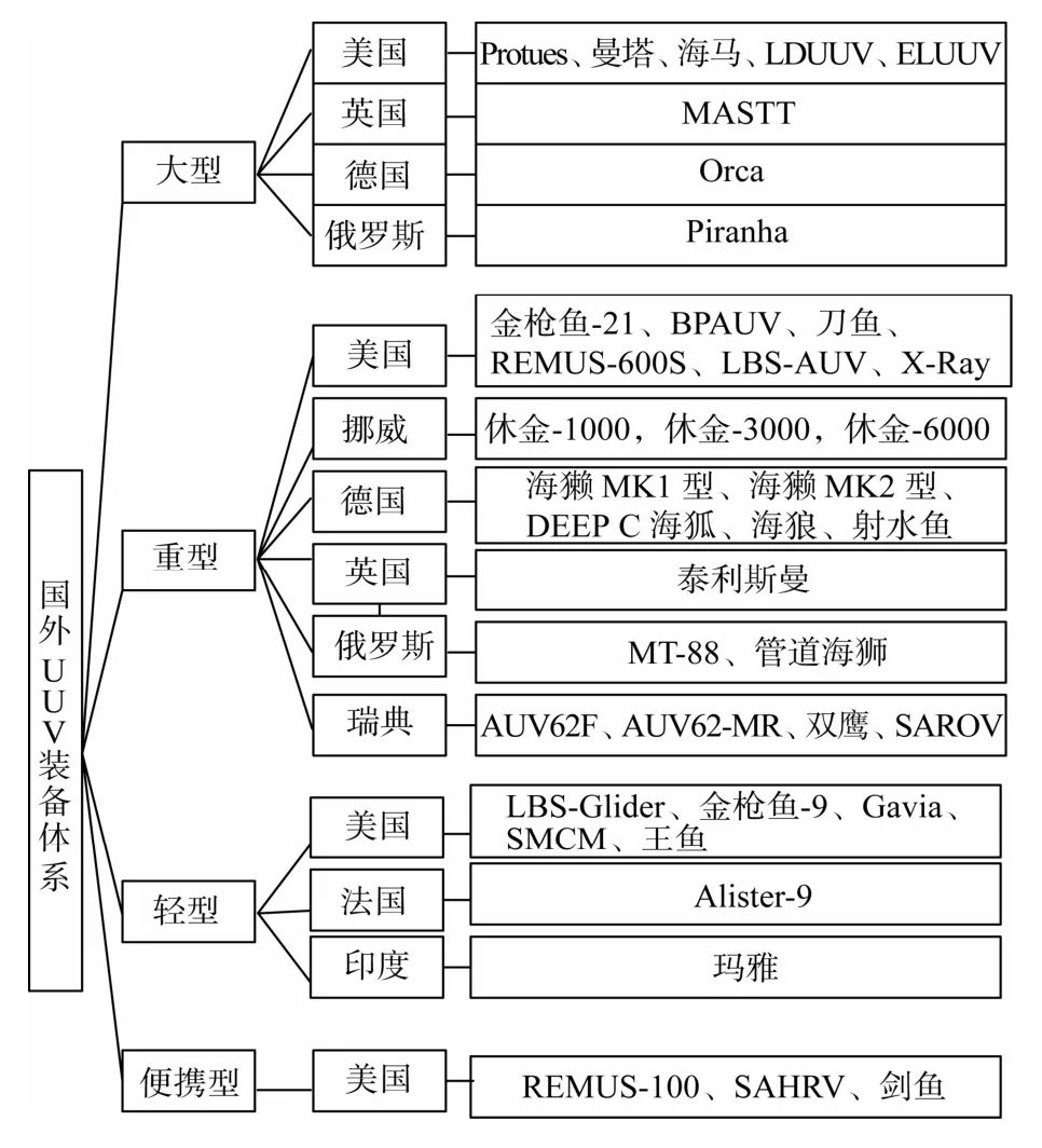 Fig. 3 Equipment systems and typical types of the UUV abroad