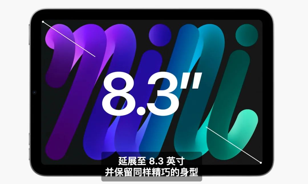 第六代 iPad mini 采用了全新的全面屏设计,摒弃了 Home 键,采用了 8.3 英寸 Liquid 视网膜显示屏。该显示屏支持广色域和原彩显示,拥有抗反射涂层,亮度达到 500 尼特。