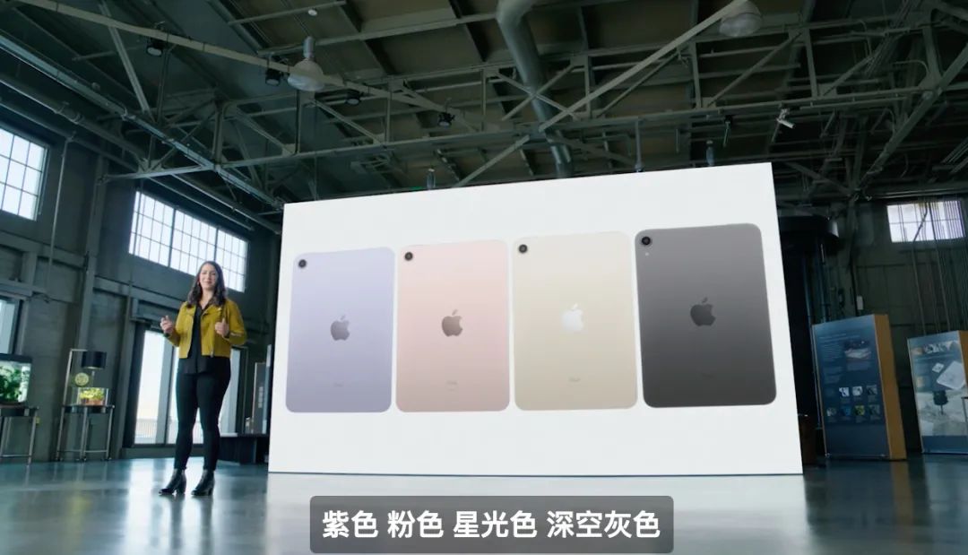 第六代 iPad mini 将拥有紫色、粉色、星光色和深空灰色这 4 种外观颜色,并且有无线局域网和蜂窝网络机型可供选择,起售价 499 美元,将于 9 月 24 日(周五)正式发售。