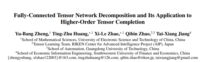 后台回复“FCTN” 可以获取《【AAAI2021】全连通张量网络分解及其在高阶张量补全中的应用》专知下载链接索引
