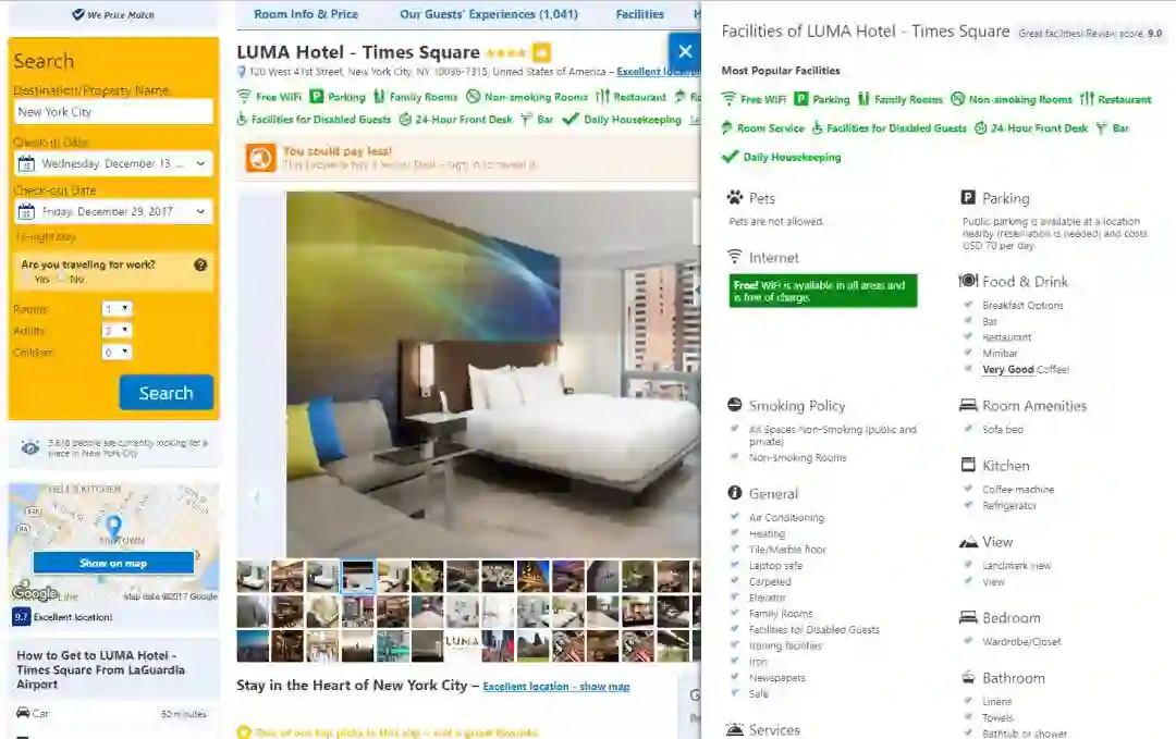 鼠标点击和悬停(特别是包括了设施、附加服务、位置数据、评分和评论信息的点击和悬停)