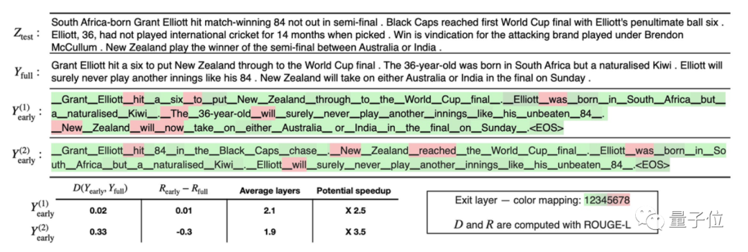 模型在解码过程中,会计算每一层的置信度c,并将它与达到“提前退出”的阈值λ相比,如果c大于λ,则模型“提前退出”。