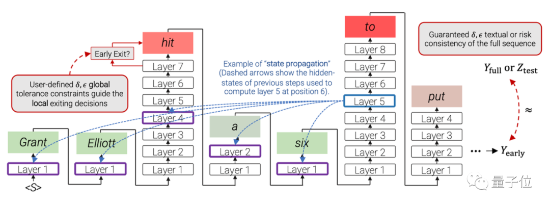 这一模型基于Transformer架构,为了加速它的计算,研究人员提出了一个名叫“提前退出”(early exiting)的方法,让模型根据不同的输入,动态决定要用多少层网络来计算。