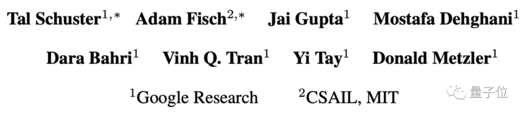 这篇论文的作者一共有8个人,分别来自谷歌和MIT CSAIL,其中主要负责人有两位,Tal Schuster和Adam Fisch。