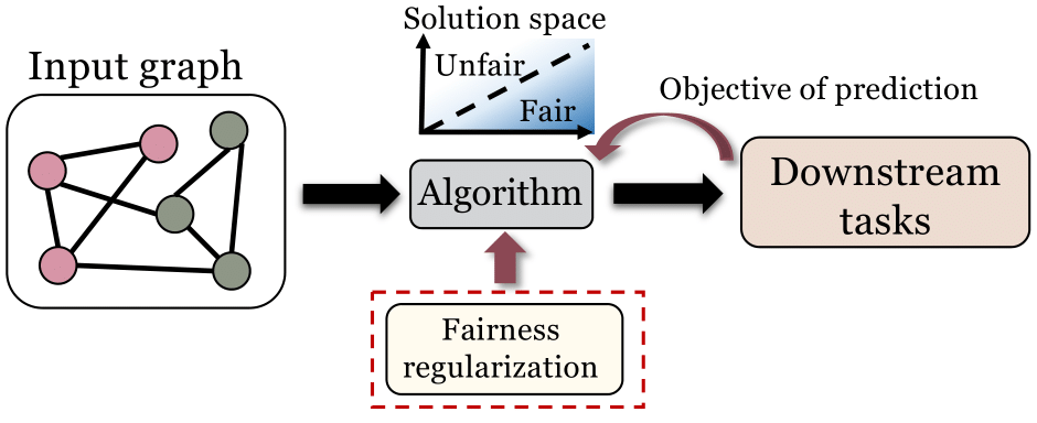 对于有目标函数的图数据挖掘问题,为目标函数设计一个正则项来实现更优的公平性是一个常见的提升算法公平性方法。该方法在诸多图数据挖掘算法以及与图数据相关的应用场景中均取得了良好的效果。我们在综述中详细介绍了正则化如何被用于提升集体公平性,个人公平性,反事实公平性。我们还介绍了在推荐系统和知识图谱场景中,正则化如何被应用以提升算法公平性。