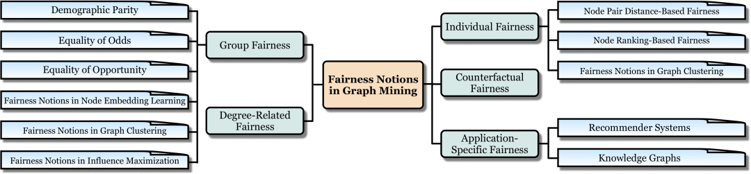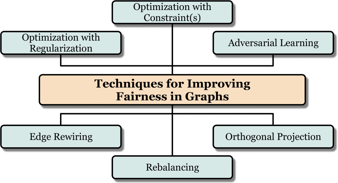 在本篇综述中,我们将图数据挖掘中实现算法公平性的方法划分为以下六类。