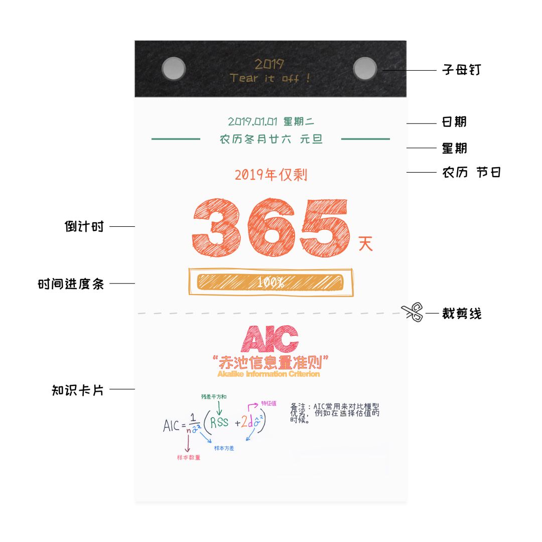 在这套日历中,不仅有每天一个的机器学习概念表,还配有一只每天都在变少的倒计时“电量格”,让时间的流逝和知识的积累都看得见。