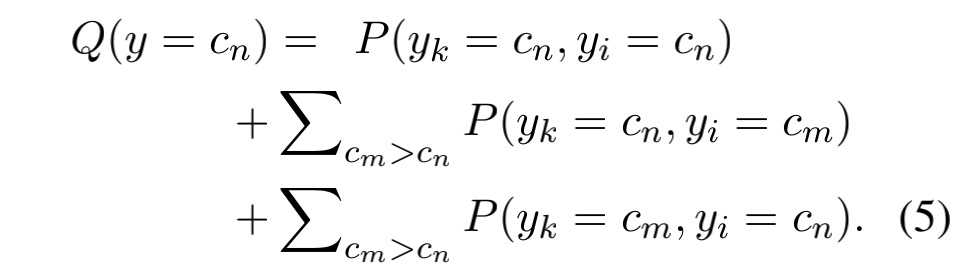 我们假设每个子问题遵循与原问题相同的目标,组合得到的概率分布 Q(y)可以从两个子问题的联合概率分布 P(yk, yi) 导出, 如下: