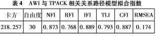 根据本研究所假设的研究模型,在AMOS21.0中绘制出AWI与TPACK相关关系模型。使用AMOS21.0对研究模型进行分析,以最大似然法为模型检验方法,对所有研究对象进行整体分析。表4为AWI与TPACK相关关系路径模型拟合指数。