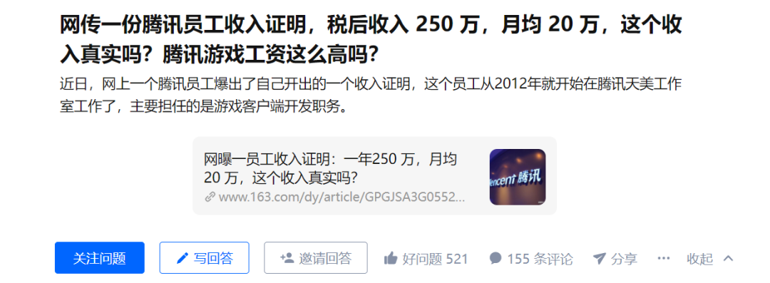 近期知乎上有个帖子在热议:网传一份腾讯员工收入证明,月均20万。