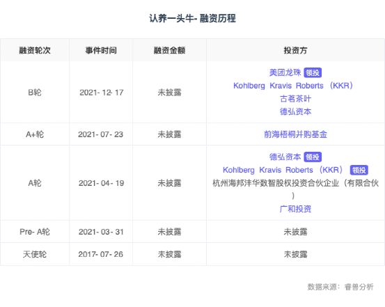 至少在资本层面,资本对于现在认养一头牛的表现还是满意的。认养一头牛2021年实现营业收入25.7亿元,估值高达100亿元,估值已经接近光明乳业和三元股份这样知名乳企的销售规模。近几年,认养一头牛共进行了5轮融资,背后站着KKR、德弘资本、美团龙珠等众多知名投资机构。