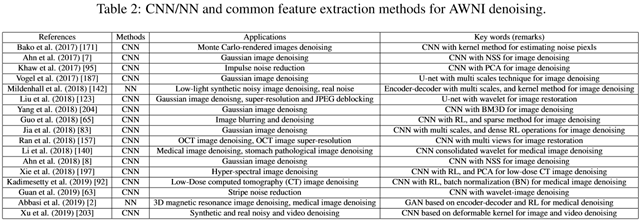 2.1.2 CNN/NN and common feature extraction methods for AWNI denoising: