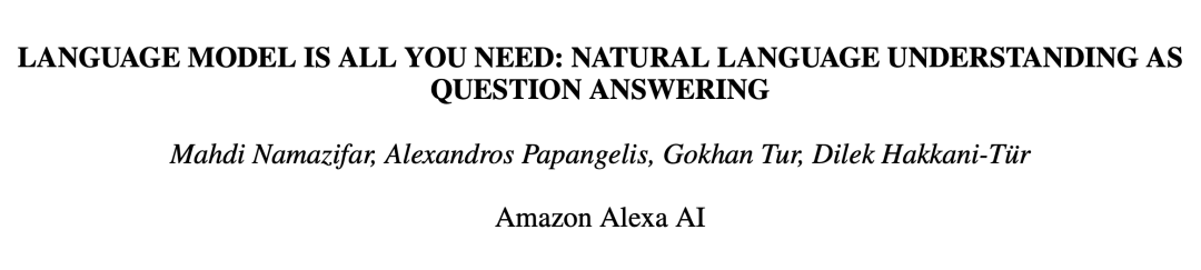 本文来自亚马逊 AI,题目起的跟 attention is all you need 类似,很吸引人。具体而言,本文研究的是 transfer learning,提出了自然语言理解的很多任务都可以使用问答模型进行解决。