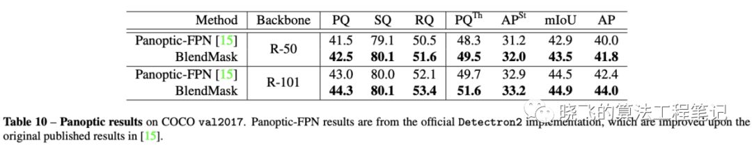 由于bottom模块能同时分割多种物体,BlendMask可直接用于全景分割