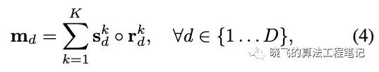 进行element-wise product,最后将K个结果进行相加得到