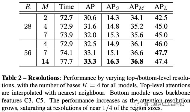在对top-level attentions进行插值时,双线性比最近邻高0.2AP。