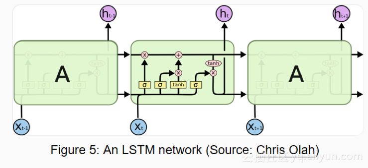 递归神经网络(RNN)是处理NLP中普遍存在的动态输入序列问题的明显选择。 Vanilla RNNs(Elman,1990)很快被经典的长短期记忆网络(Hochreiter&Schmidhuber,1997)所取代,后者证明其对消失和爆炸梯度问题更具弹性。在2013年之前,RNN仍然被认为很难训练,Ilya Sutskever的博士论文是改变这种现状的一个关键例子。LSTM细胞可视化可以在下面的图5中看到。双向LSTM(Graves等,2013)通常用于处理左右上下文。