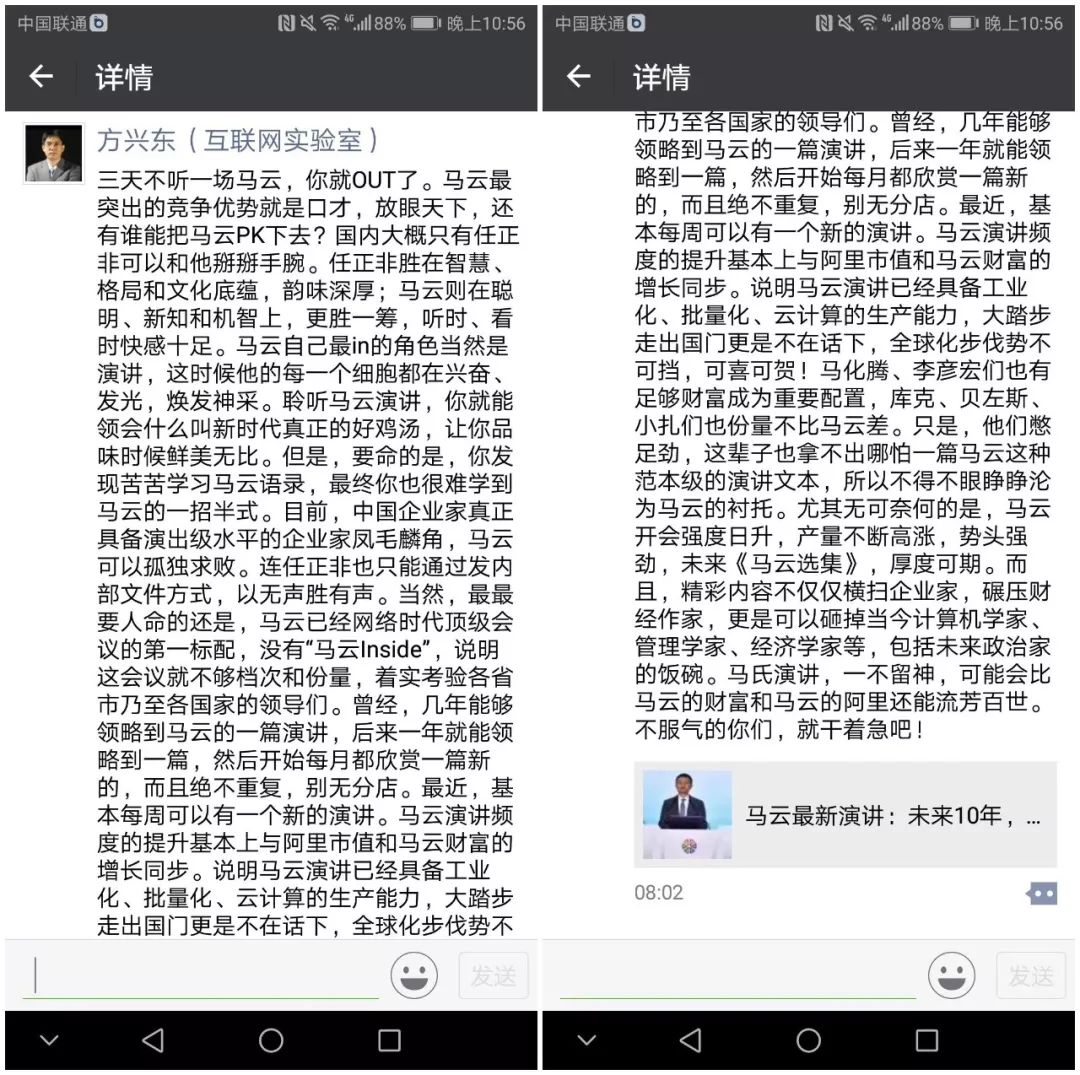 但是,通篇认真读下来,用力过猛的夸人水平,实际上是在明示“事情没那么简单”。于其说是夸,不如说是高级黑。这段话明着说的是,马云擅长演讲、热衷演讲,频繁出入各大高端会议,带来的影响,已经不是其他互联网的CEO能望其项背。但是过于热衷某一件事,就意味对另外一事情上时间的压缩,热衷于“跑会”,演讲变成个人脱口秀、表演,对于一家企业而言,是一件好事情吗?