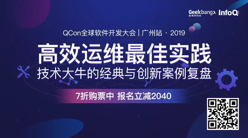 聚焦高效运维最佳实践,复盘技术大牛的经典与创新案例,从中获取实战经验。QCon 全球软件开发大会广州站,5 月 25-28 日与你相约万富希尔顿。目前,大会 7 折限时优惠,立减 2040 元,团购更多惊喜!扫描下方二维码或点击阅读原文了解,有任何问题欢迎咨询 Joy 同学,电话:13269078023(微信同号)。