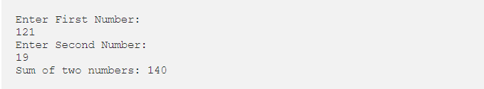 System.out.println(“Sum of two numbers: “+sum);