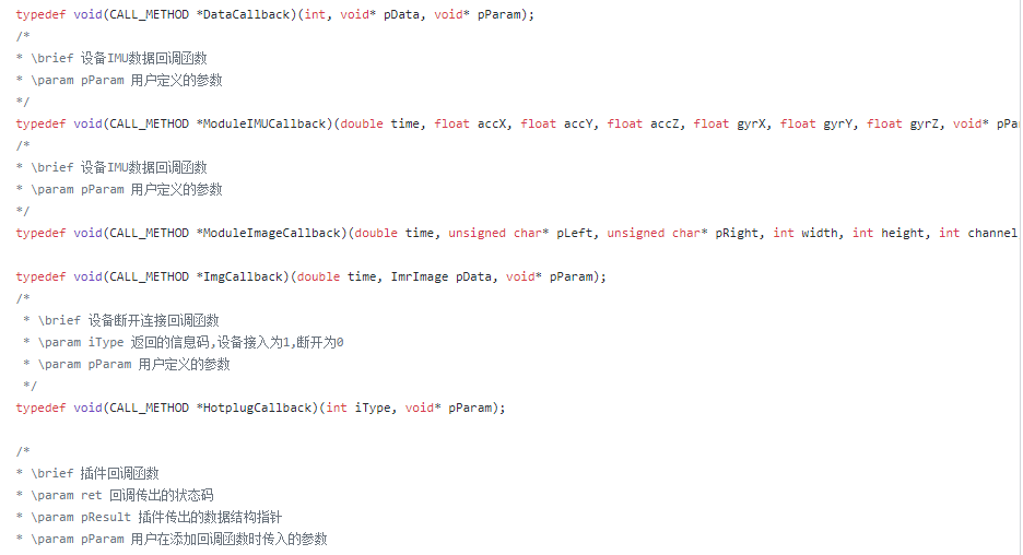 除了自研Vi-SLAM算法外,SDK还对模组的各个接口、数据回调函数做了详实的注释,确保开发者可尽快上手双目视觉惯性模组并根据SDK标注的接口、注册函数拿到自己需要的数据,加速项目的研发进程。