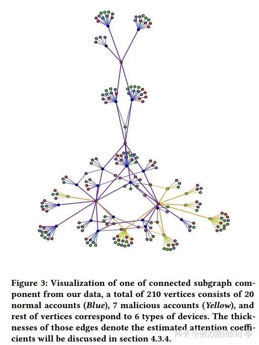 这里的设备有更广泛的含义,比如说mac地址,IP地址等,本文中利用电话号码,UMID, MAC地址,IMSI, APPID, TID六种类型设备,可以根据不同设备类型构建不同子图, ,其中每个子图包括了全部节点,边只包含属于该类型设备的边。