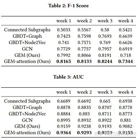 本文的目的是检测支付宝的异常用户。文中针对支付宝用户的“设备聚集性”和“活动聚集性”特征,在传统GCN的基础上进行改进提出GEM模型:考虑不同节点类型构建异构图,利用聚合函数结合邻居节点信息,此外还引入了注意力机制进行建模。对比其他模型取得了较好的效果