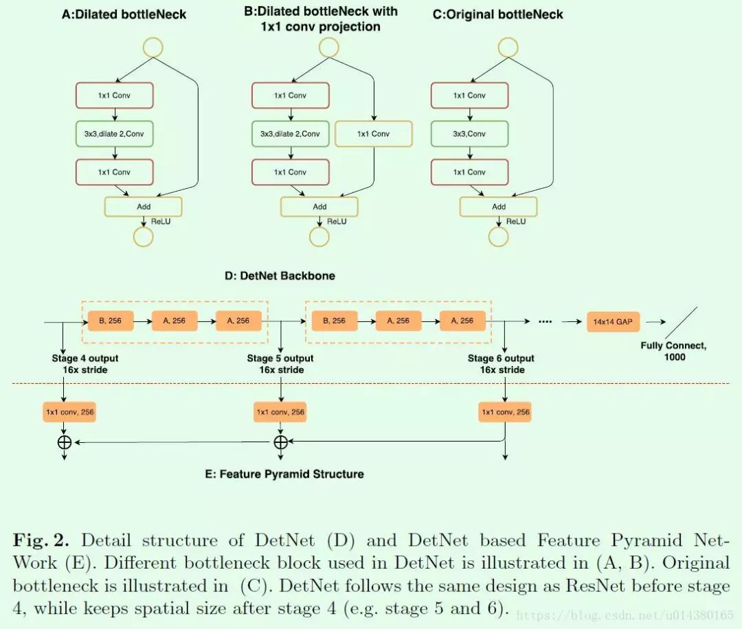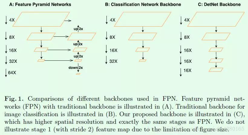因此DetNet的提出主要也是针对这两个出发点,换句话说是设计了一个专门用于目标检测算法的特征提取网络,主要改进点包括: