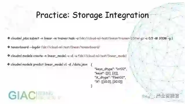 我们对存储系统做了集成。开源的Tensorflow目前只支持本地存储,因为我们在云端训练,任务由我们调度到特定的机器,用户不可能直接把训练数据放到本地。