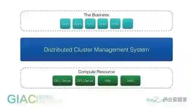 我们在中间引入一个分布式的管理系统,让上层业务应用不需要直接管理底层资源,由统一的调度系统去实现。