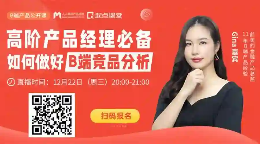 今晚20点,前美的金融产品总监@Gina老师将进行直播,结合自己11年的B端产品经验教你一套做B端产品「竞品分析」的方法。