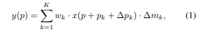 接下来大概介绍一下modulated deformable convolution,公式如下所示,△mk就是modulation要学习的参数,这个参数的取值范围是[0,1],假如去掉这个参数,那么就是DCNv1中的deformable convolution。
