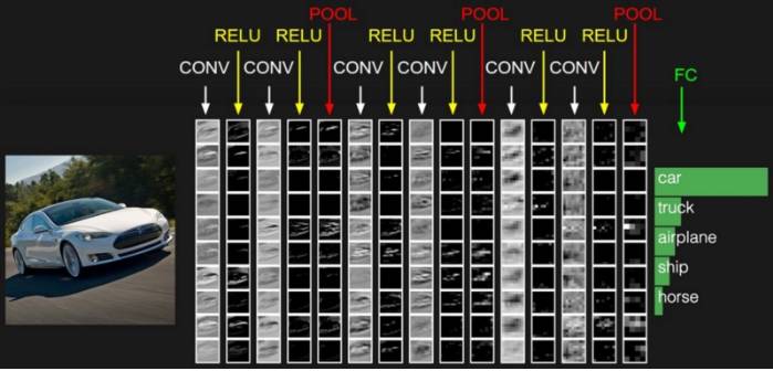 一张汽车的图片经过 ConNet,并在全连接层输出类别为汽车