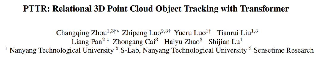 论文名称: PTTR: Relational 3D Point Cloud Object Tracking with Transformer