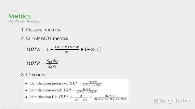 参考文献:[1] Alex Bewley, Zongyuan Ge, Lionel Ott, Fabio Ramos, and Ben Upcroft. Simple online and realtime tracking. In2016 IEEE International Conference on Image Processing (ICIP), pages 3464–3468. IEEE, 2016.[2] Nicolai Wojke, Alex Bewley, and Dietrich Paulus. Simple online and realtime tracking with a deep associationmetric. In2017 IEEE International Conference on Image Processing (ICIP), pages 3645–3649. IEEE, 2017.[3] Chen Long, Ai Haizhou, Zhuang Zijie, and Shang Chong. Real-time multiple people tracking with deeplylearned candidate selection and person re-identification. InICME, 2018.[4] Zhongdao Wang, Liang Zheng, Yixuan Liu, Shengjin Wang. Towards Real-Time Multi-Object Tracking. arXiv preprint arXiv:1909.12605[5] Gioele Ciaparrone, Francisco Luque Sánchez, Siham Tabik, Luigi Troiano, Roberto Tagliaferri, Francisco Herrera. Deep Learning in Video Multi-Object Tracking: A Survey. arXiv preprint arXiv:1907.12740 ——END——