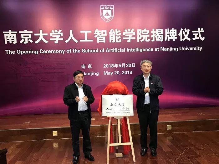 2018年5月20日,江苏省委常委、南京市委书记张敬华与中科院院士、南京大学校长吕建为人工智能学院揭牌。