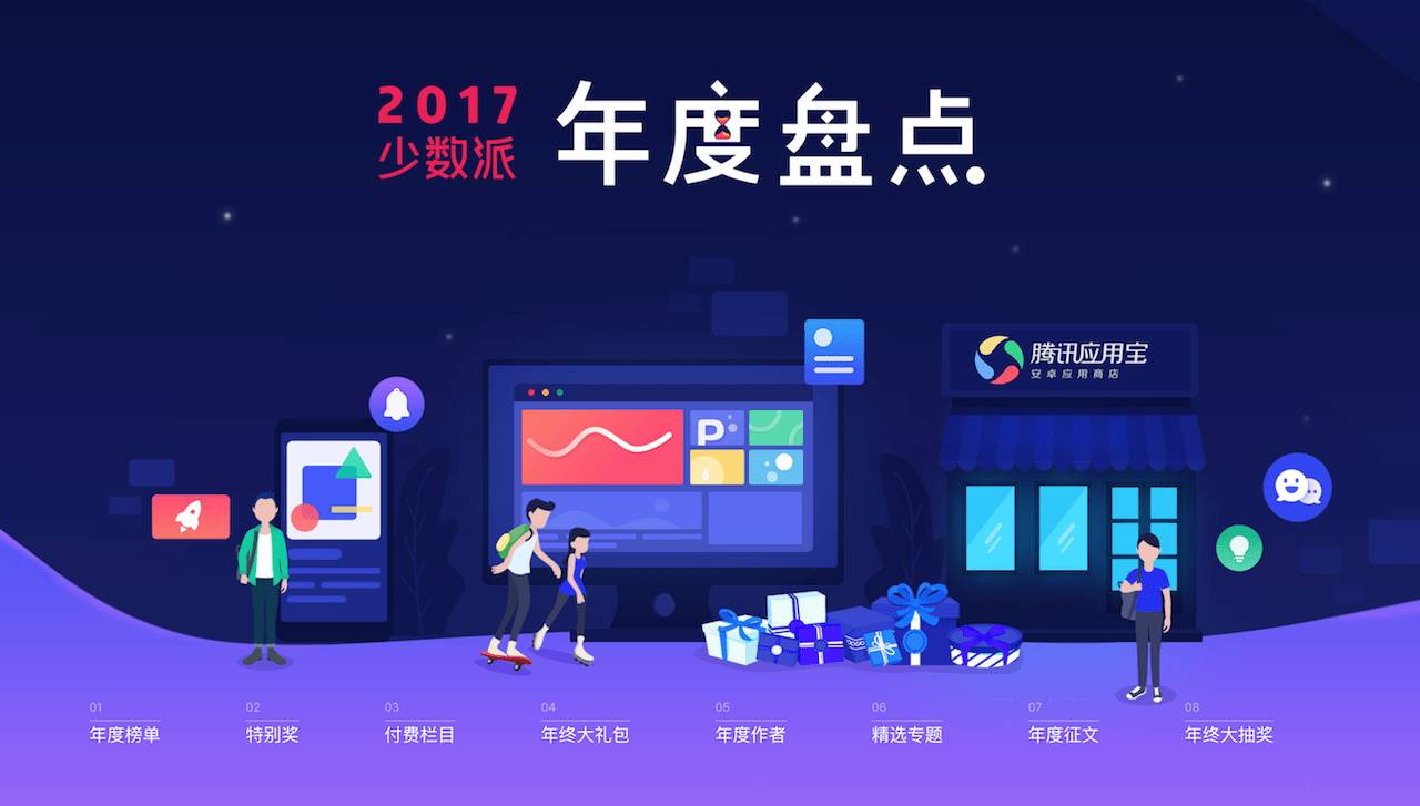 除了年度 App 榜单,你还可以直接访问 少数派 2017 年度盘点 专题页,了解少数派特别奖、年度优秀作者、「福利派」,三轮抽奖、年度征文等信息。