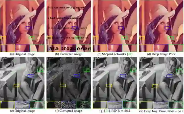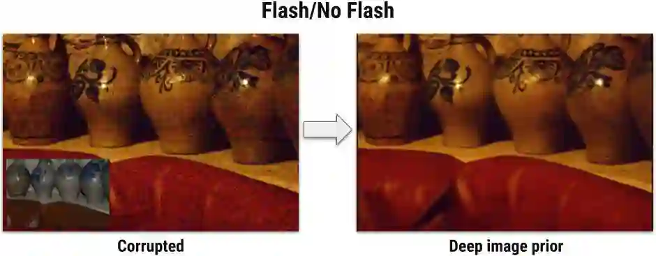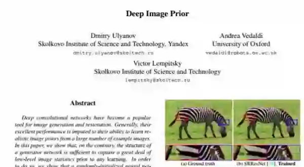 深度卷积网络已经成为图像生成和恢复的通用工具。一般来说,它们的出色性能归功于它们从大量样本图像中学习真实图像先验(image prior)的能力。而在本文中,相反的是,我们证明生成器网络的结构足以将大量的低等级图像统计先验捕获到任意学习中。为了做到这一点,我们展示了一个随机初始化的神经网络可以用作一个手动先验,并且可以在诸如去噪、超分辨率和修补等标准可逆问题上获取很好的性能表现。此外,同样的先验可以用来反演深度神经表征从而对其进行诊断,并且可以对基于“闪光—无闪光”输入对的图像进行恢复。